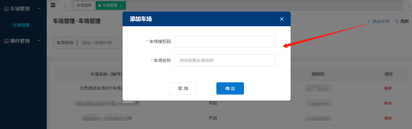 運(yùn)維平臺(tái)綁定車場(chǎng):