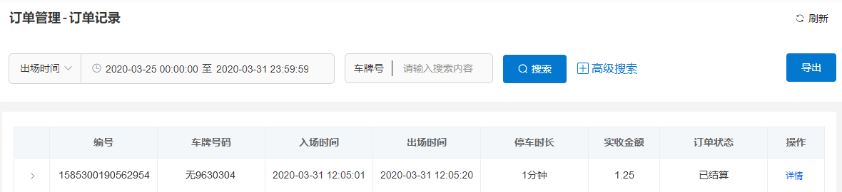 云端寫一條該無牌車的訂單記錄,有當(dāng)前出場圖片。
