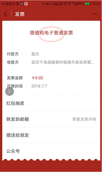 1、支付完成頁面點擊領(lǐng)取發(fā)票(目前僅支持微信支付完成頁面開票)