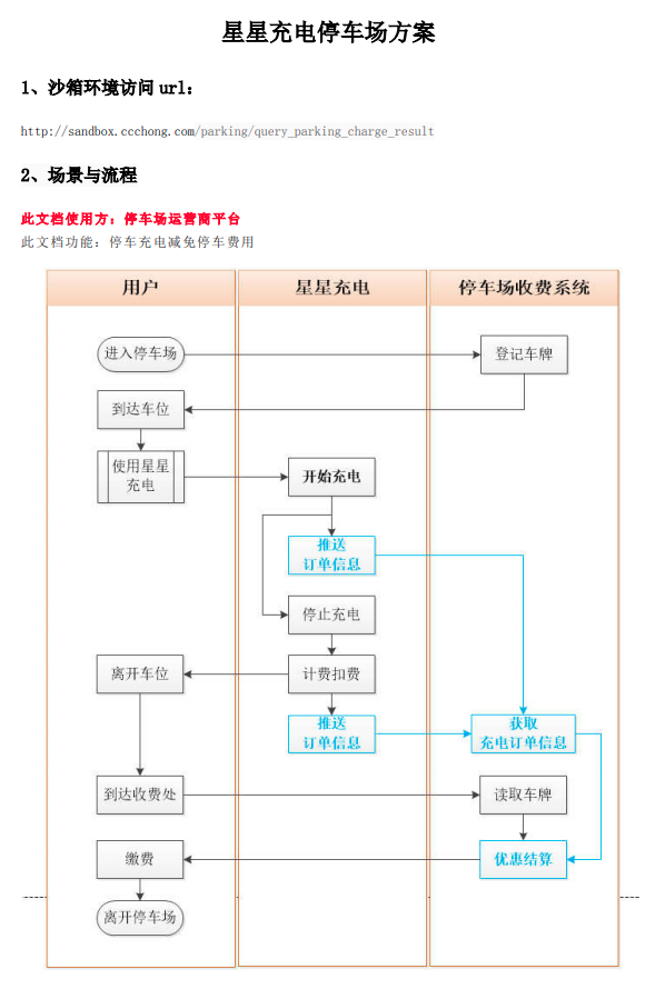 目前已對(duì)接多家充電平臺(tái),需使用的車場(chǎng)提供泊鏈車場(chǎng)編號(hào)、廠商編號(hào)等下列參數(shù),平臺(tái)進(jìn)行相應(yīng)配置后可對(duì)接使用