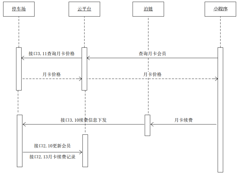 本地車(chē)場(chǎng)給月卡會(huì)員續(xù)費(fèi)后,調(diào)用接口2.10上傳月卡更新信息和接口2.13上傳月卡續(xù)費(fèi)記錄到云平臺(tái)。