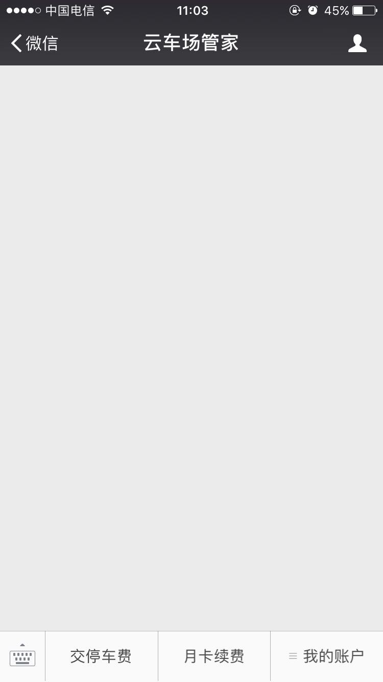 如上圖,點(diǎn)擊公眾號頁面右下角的“我的賬戶”按鈕,先添加車牌,再點(diǎn)擊左下角的“交停車費(fèi)”按鈕,查詢當(dāng)前車牌的在停訂單。(無牌車會自行綁定)