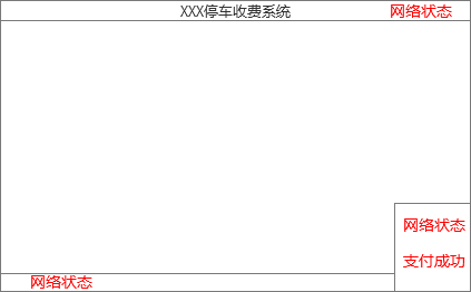 3、展現(xiàn)方式:推薦在軟件明細(xì)位置展示當(dāng)前電子支付網(wǎng)絡(luò)狀態(tài),好方便收費(fèi)員判斷是否出了問題,能及時發(fā)現(xiàn)解決。見圖例,可以選擇在頁面上下邊顯示,也可以做成小窗體顯示在右下角,里面同時顯示比如出口掃碼付,掃碼槍等支付的狀態(tài)。