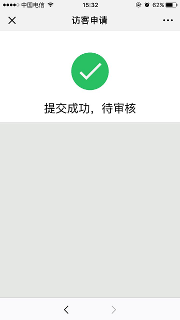 提交訪客申請后,根據(jù)車場后臺的訪客申請設置(是否允許訪問、是否自動審核),展示給訪客不同提示頁面。