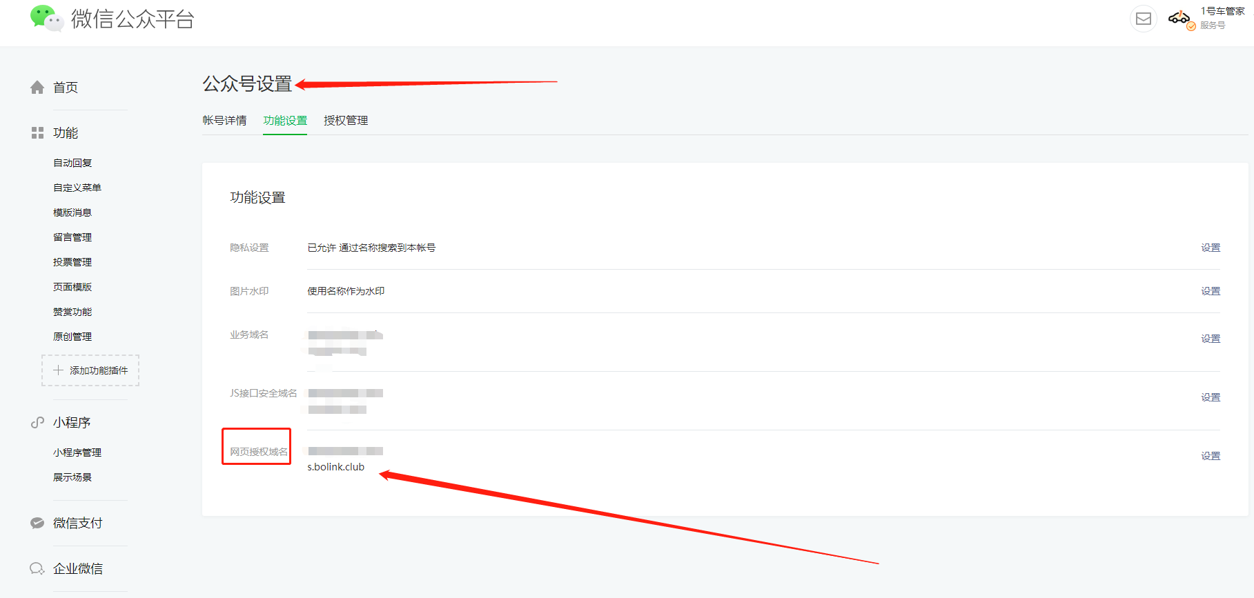 6、公眾號(hào)需要配置網(wǎng)頁(yè)授權(quán)域名 s.bolink.club(下載圖中文件發(fā)給支付平臺(tái)人員進(jìn)行配置)