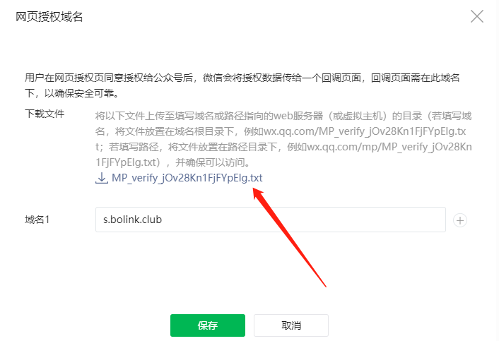 4、公眾號(hào)需要配置網(wǎng)頁(yè)授權(quán)域名 s.bolink.club(下載圖中文件發(fā)給支付平臺(tái)人員進(jìn)行配置)