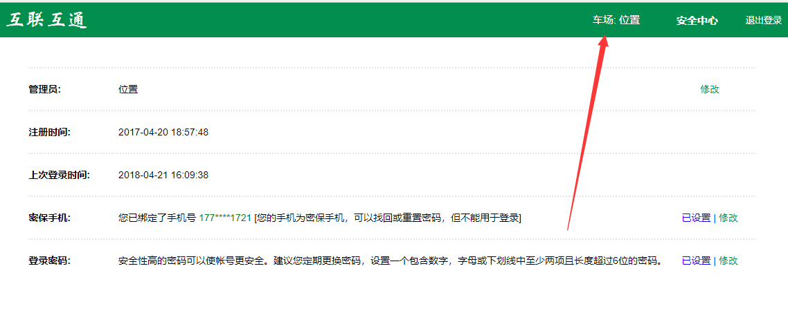 如果想修改登錄人員名字,請(qǐng)點(diǎn)擊安全中心,這個(gè)頁(yè)面同時(shí)可以修改密碼、密保手機(jī)等信息