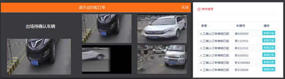 該截圖右下角的事件管理列表,顯示當(dāng)前登錄的集團或車場收到來自車場的所有事件。點擊某個事件的“查看匹配”按鈕,彈出匹配出的訂單圖片列表,如下圖: