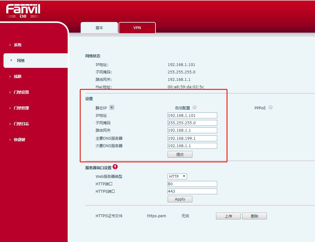 3、修改對講設(shè)備的網(wǎng)絡(luò)地址和線路號碼