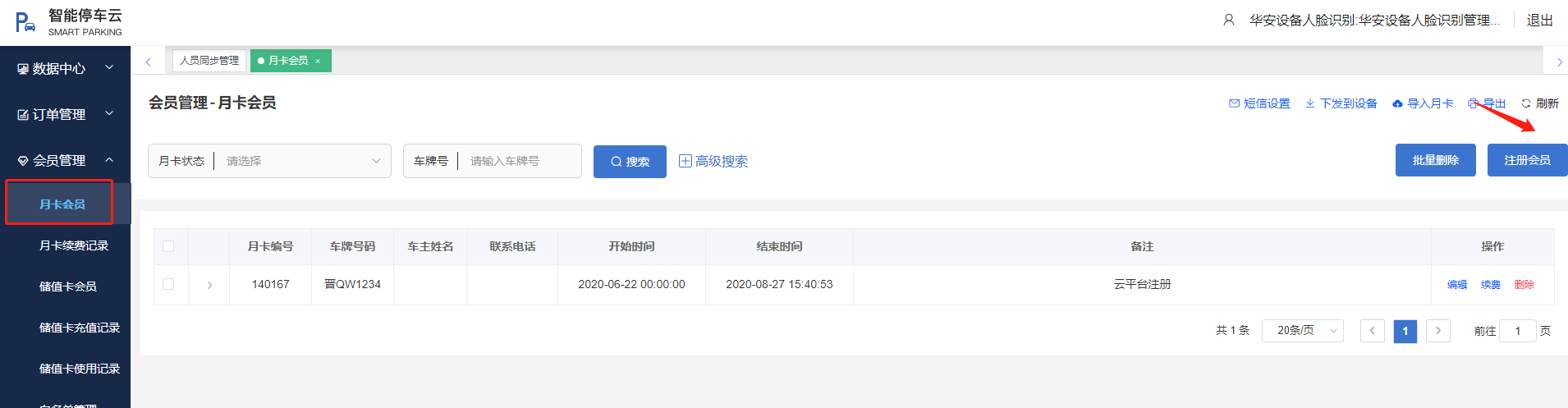 通過接口3.7下發(fā)會員信息到本地車場系統(tǒng)。